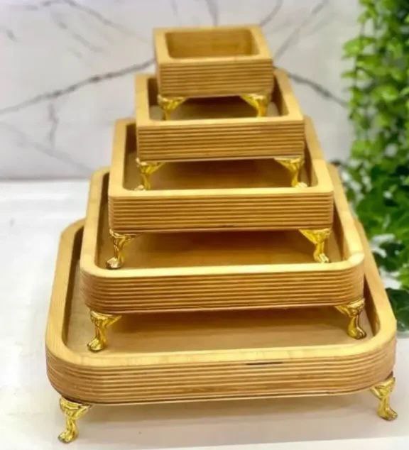سینی پنج تیکه پایه دار چوبی در دو مدل گرد و مربع