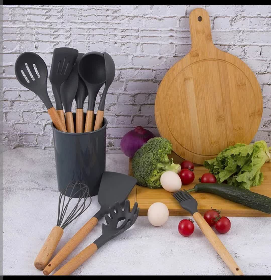 ست ملاقه کفگیر سیلیکونی یازده پارچه در دو رنگ زیبا