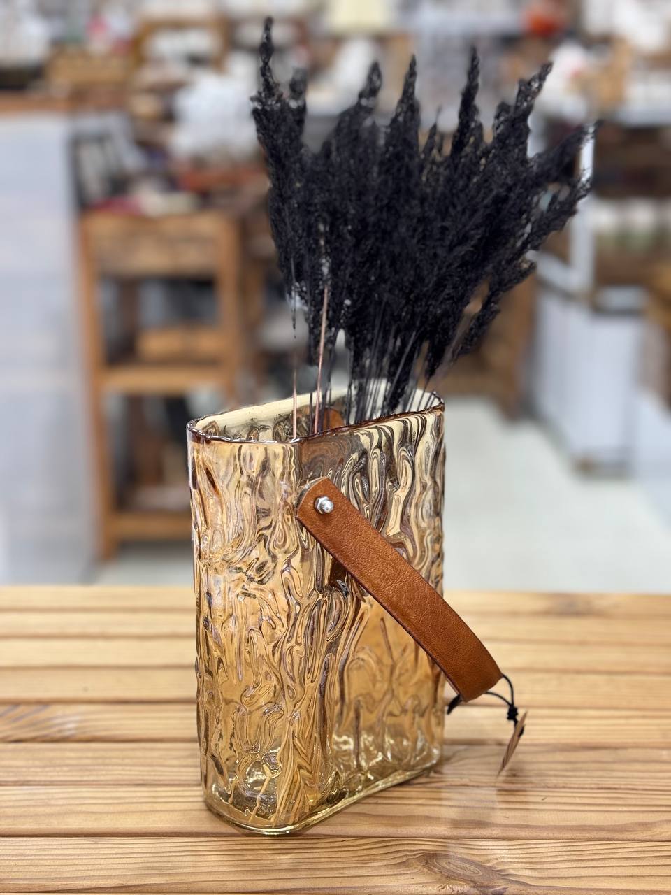گلدان دسته چرمی شامپاینی مدل کتابی